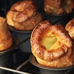 Apparently Yorkshire pudding was invented – in Yorkshire – to make the Sunday roast go further. The Yorkshire pudding mix was placed on a rack beneath the roast, which sat on the bare rack above, so that the drippings could fall into the pudding. It must have made an awful mess in the oven! I have made it many times putting a little of the drippings into the pan before pouring the batter in. Delicious!