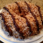 “What could be better than a box of Samoas®, those coconut-and-caramel-topped, chocolate-drizzled Girl Scout cookies of your childhood dreams? A giant spiced Bundt cake version of the cookie, filled with coconut and chocolate chips, then topped with rich caramel sauce, chocolate-coconut sauce and toasted coconut flakes”