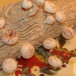 A Yule Log was made for Christmas and did I ever have fun making it! The meringue mushrooms are easy and they are so adorable! Sprinkling a little cocoa powder on them takes the snow white away and the contrast with the cake-roll log is perfect. The flavor of the frosting and filling can be changed to whatever flavor *but* the idea is to keep the color brown so that it looks like a log. This is a new tradition that will stay for me because it was not hard and I always thought it would be!