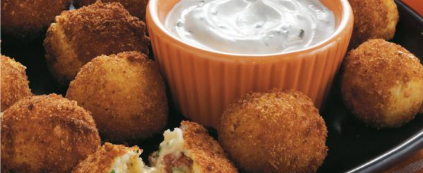 What could be better than loaded mashed potatoes? Loaded mashed potato balls of course! They are dippable and pop right in your mouth. Just try to stop eating these little balls of joy. They have so much flavor that my mouth is watering just thinking of them. You bite into them while they are hot and get a burst of cheese and bacon flavor. The cheese strings from each bite! Isn’t this just the side or appetizer that everyone dreams of?