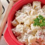 Anyhoo, this recipe is for ham and potato salad. You add in some savory ham chunks to the mix and now you don’t just have a side dish you have a meal 🙂
