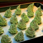 When it comes to holiday baking and goodies I like to veer from the beaten path a bit. You see, when I make yummy things for my friends and family I like to go all out and prepare baked goods that nobody else makes. These cute little meringue Christmas trees certainly fit the criteria. Theya re sweet, fun to make, and very pretty to look at. Plus, they are quite easy to throw together. My youngest son helped me make these last Christmas when he was only 9 and I think he did a better job at piping out the meringue than I did!